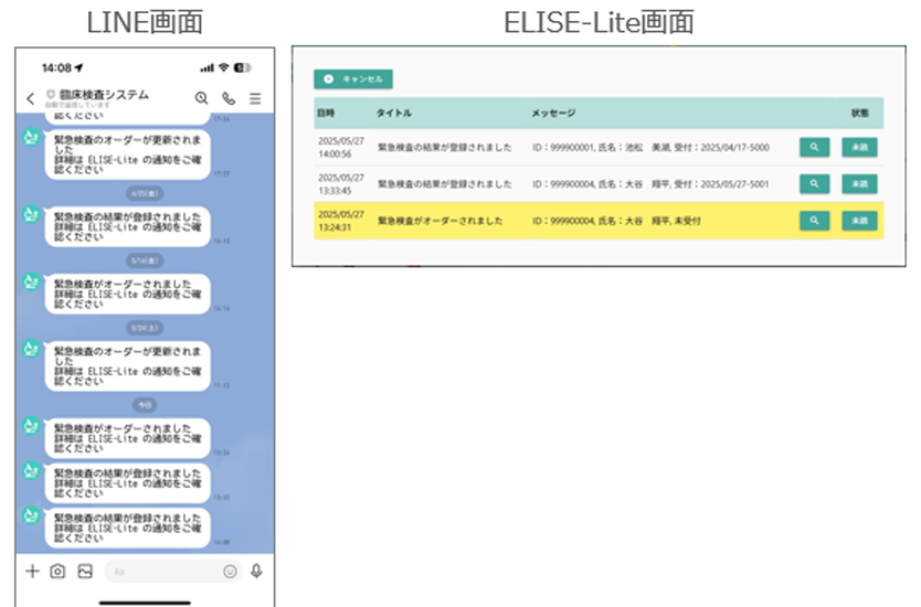 緊急検査オーダーを受信した際に、リアルタイムで通知します。緊急検体の結果を分析装置から受信した際に、リアルタイムで通知します。